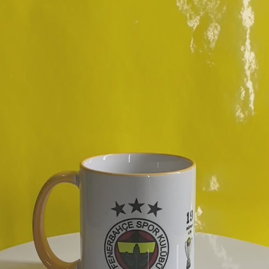 Fenerbahçe Tasse-35 Titel Design-Fanartikel mit Vereinslogo &Pokalstatistik- Gelber Henkel-Fußball Erfolge-Türkischer Fußballverein-Geschenk
