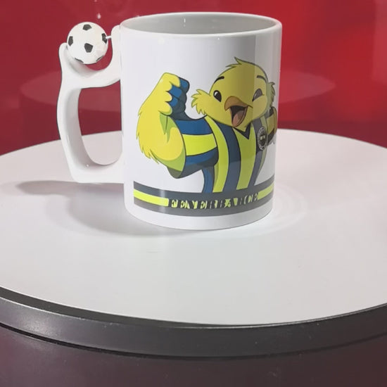 Fenerbahçe Tasse | Kanarya Fan-Becher mit Fußball-Henkel | FB Logo & Maskottchen | Sarı-Lacivert 1907