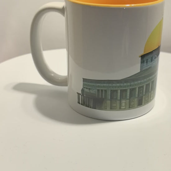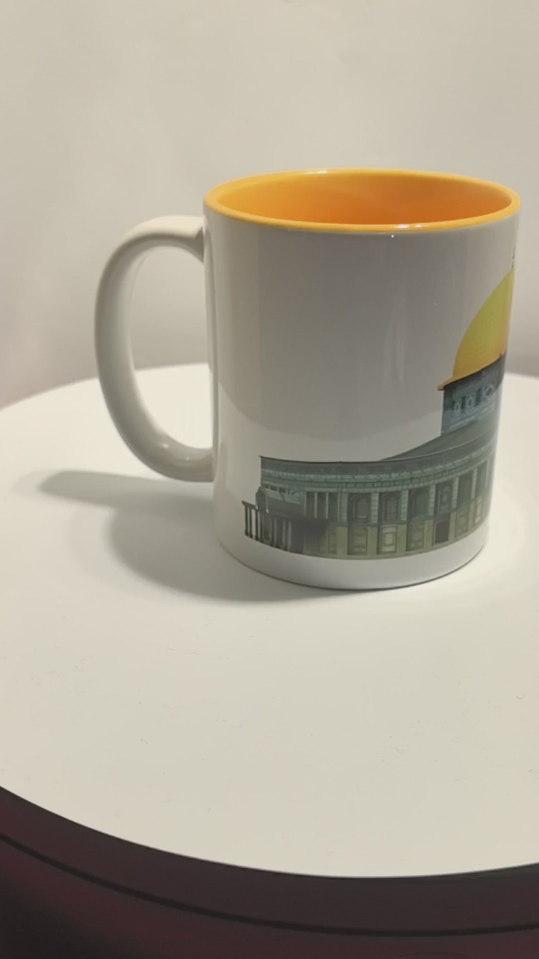Diese stilvolle Keramiktasse zeigt den berühmten Mescid-i Aksa in Jerusalem – eines der bedeutendsten islamischen Bauwerke der Welt. Die goldene Kuppel und die kunstvolle Architektur sind detailreich aufgedruckt und machen die Tasse zu einem echten Blickfang.