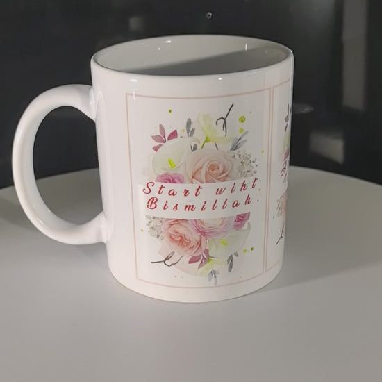 Muslimisches Geschenk mit floraler Verzierung-Keramiktasse mit Bismillah-Spruch â Islamisches Design & Blumenmotivâ Floral und Elegant