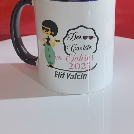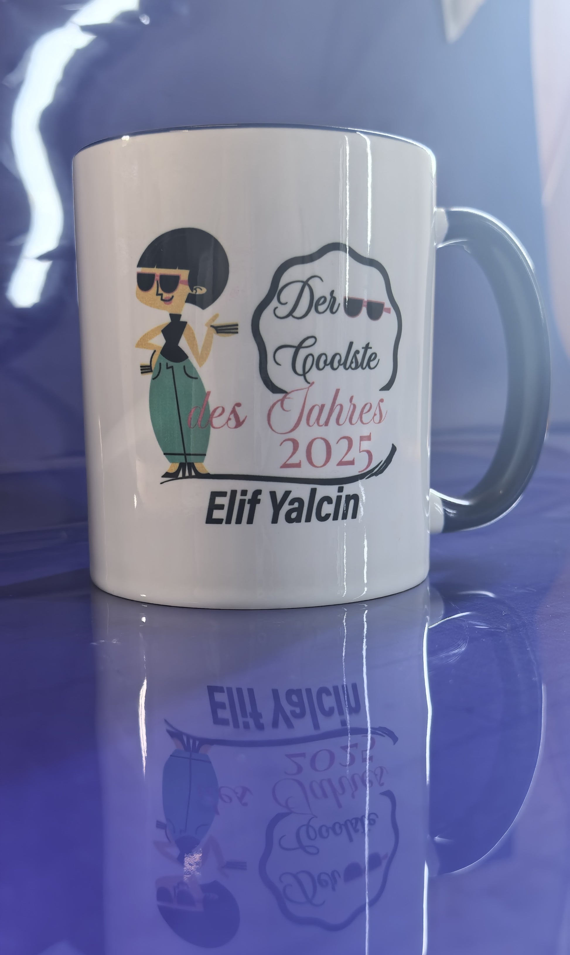 Mit dem frechen Titel „Der Coolste des Jahres 2025“ und deinem Wunschnamen wird sie zum perfekten Geschenk für die coolste Frau in deinem Leben. Ob für Elif Yalcin, deine Schwester, beste Freundin oder Kollegin – diese Tasse feiert Stil, Selbstbewusstsein und Humor. Die Illustration zeigt eine stylische Figur mit Sonnenbrille und Power-Pose – ein echter Hingucker auf jedem Frühstückstisch oder Schreibtisch.
