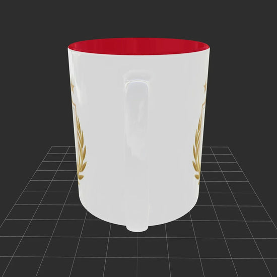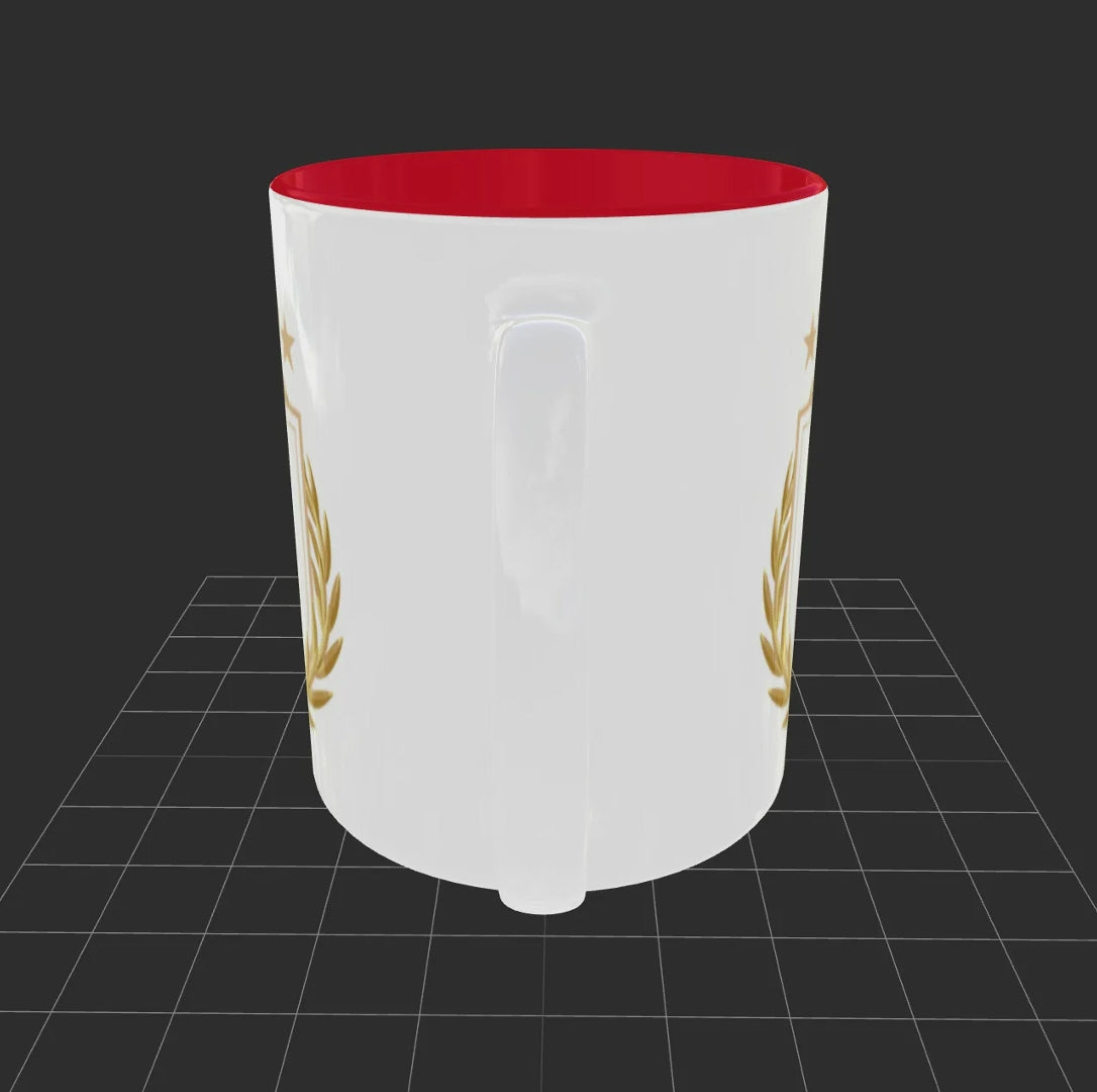 Authentische Farben: Die Tasse hat eine rote Innenseite und einen passenden Henkel, die die traditionellen Vereinsfarben widerspiegeln.