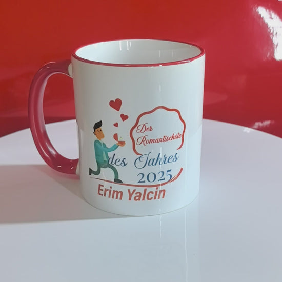 Romantischste des Jahres – Personalisierte Tasse mit Comic & Wunschname – Lustiges Valentinstag Geschenk